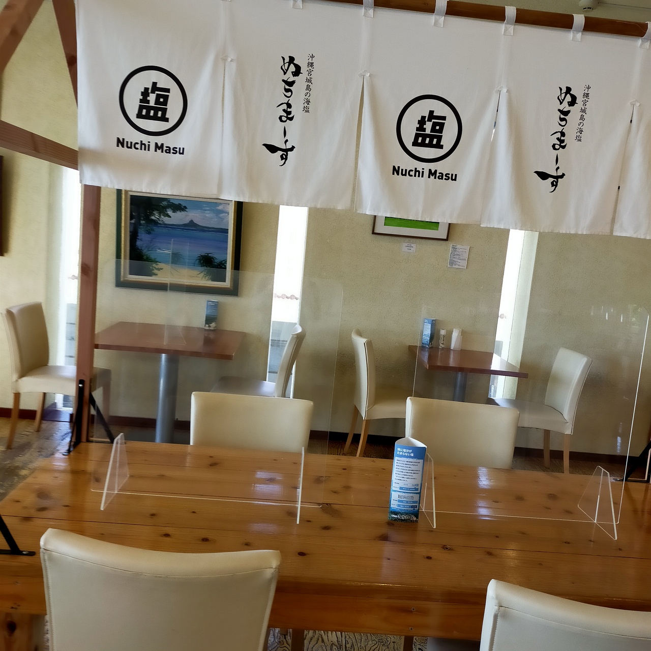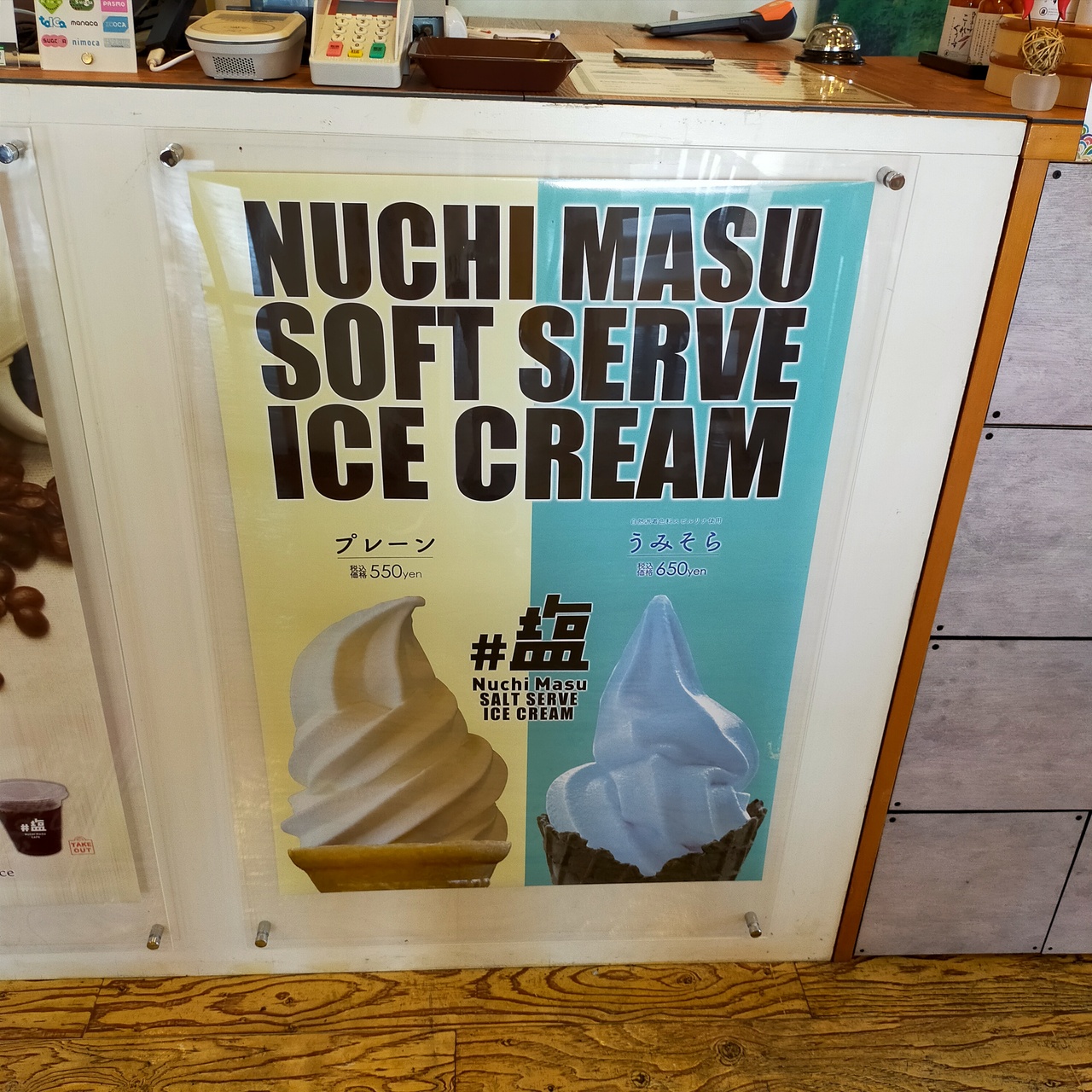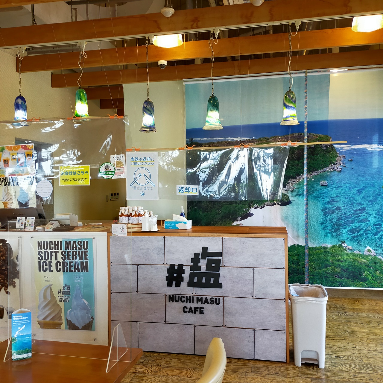 ぬちまーす塩ファクトリーの二階にある飲食店です。名物塩ソフト食べました。550円はしますが、塩とアイス合いますね。暑い時期に良いですね。他にランチもやっているみたいで、時間が合わないので断念しました。展望テラスもあるので、見てください。