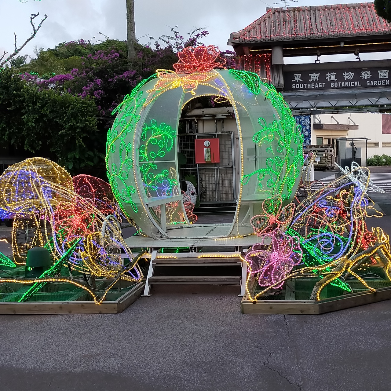 Hisのlealeaクーポンで昼と夜の入場券とハイビスカスティーがセットになってたので、イルミネーション目当てに行きました。昼は、熱帯植物があり、小動物ふれあいコーナーで遊べます。しかし、夜までが長く、出入り自由だったから、ホテルまで戻れば良かった。沖縄の日暮れが遅く、6時半過ぎに行かれる事をおすすめします。