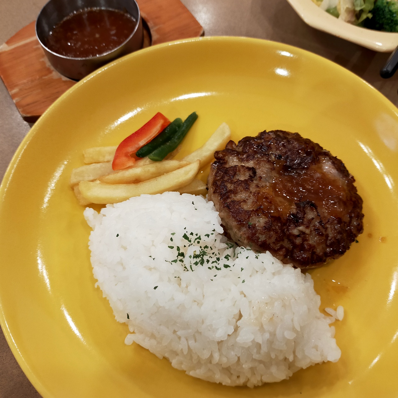 ヴィクトリアステーションにはよく行きます。このチェーン店は安いですね。ハンバーグプレート780円税抜きにはサラダバー、スープバーが付いているので、ドリンクバーつけなければ、この値段です。サラダをよそって食べてるうちに、ハンバーグがきます。ソースは2種類から選べます。