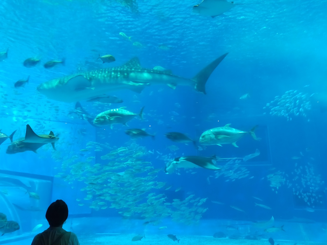 美ら海水族館は、公園もあり家族連れには一日遊べるスポットです。浜には行かなかったけれど、海遊びが出来るそうです。広いので園内バスを使って移動すると楽ですね。ジンベエザメのいる展示は、餌やりタイムみるといいかな。座席があるので、ゆっくり座ってみてられますね。オススメは、オキちゃん劇場でのイルカショー。見頃十分です。ショーの時間は、前もって知っていたほうが良かったです。