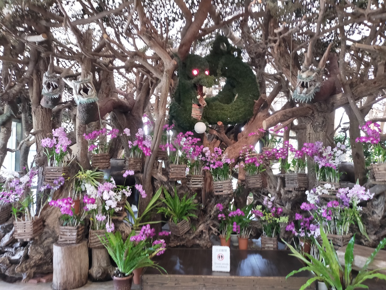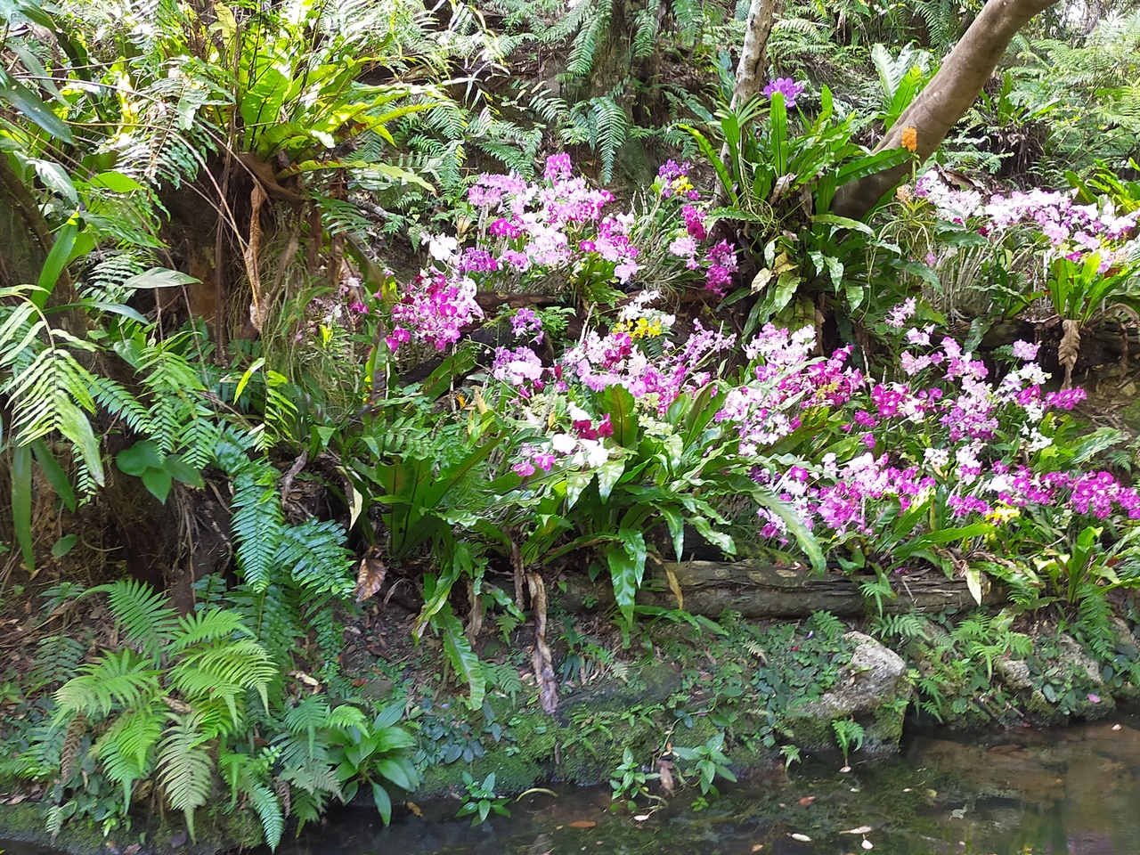 コロナ禍で入場料が上がったそうです。川下り船に乗りましたが、ガイドさんの話しを聞きながら、川辺の花を見ることが出来ます。ヤギの散歩が出来ます。広場に子供の遊具があり楽しそうでした。ガーデンハウスは、蘭の花がたくさん咲いていました。場所柄蒸し暑いし虫さされに注意必要です。
