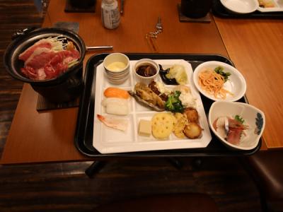 お部屋は広々。窓からの眺めも上々。スタッフの対応も良くて、8,480円(税込)という安さながら、お料理は松本のソウルフード「山賊焼き」をはじめ、和洋中メニューが豊富。味も美味しくて朝も夜も食べ過ぎました。