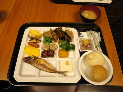 朝食も美味しかったです。愛媛名物「じゃこ天」や、「松山あげ」入り味噌汁に、日替わりで鶏の唐揚げや、とろとろのスクランブルエッグなど。オーブントースターで自分で作る目玉焼きも、珍しくて面白い。