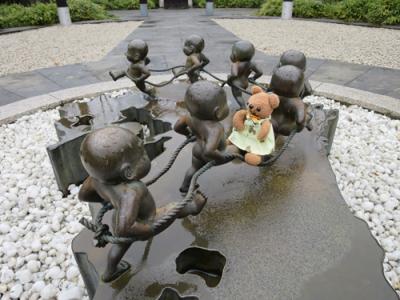 周囲にはミニトレインが走る線路があったり、市街を一望する展望台があったりするので、神社と言っても作り物っぽい感は否めません。それでも、時折、小雨がぱらつく天気だったこともあり、人の姿もなく、静かな雰囲気の中でお参りすることができたのは良かったです。