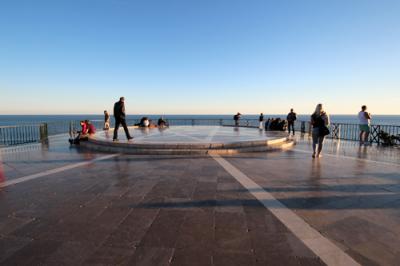 夕方は多くの観光客で賑わっていました。すぐ近くには海を見渡せるレストランやカフェにジェラート屋さんなどもあります。日によって、大きなシャボン玉を飛ばす大道芸人や、ギター片手に歌っている人などの姿も見かけました。気温は11月だと日中は20度になりますが、朝方と夕方は10度をきります。風の強い場所でもあるので、上着を持って行ったほうがいいと思います。