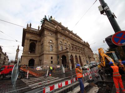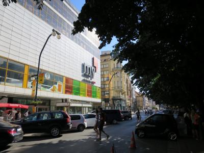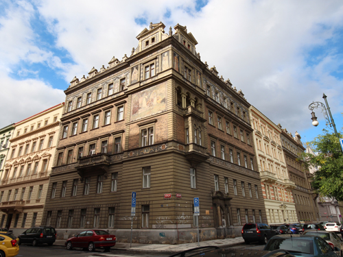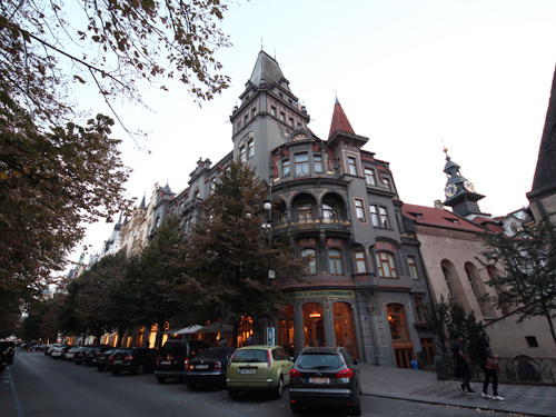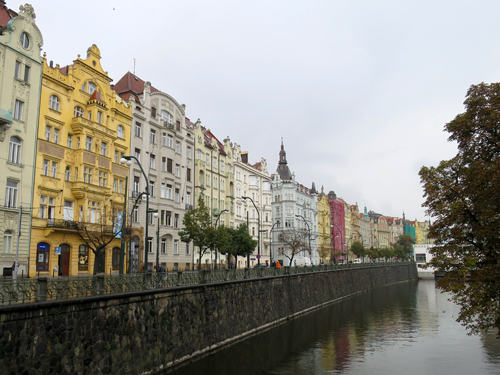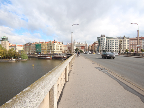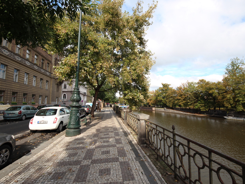 プラハ本駅から旧市街へと向かう途中にある通りです。歩道が狭く、スーツケースを引っ張って歩いていると、すれ違う人とぶつかりそうになって大変でした。