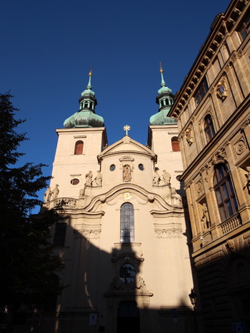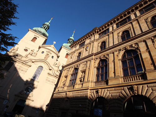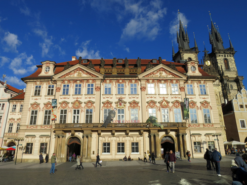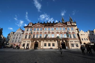 旧市街広場に面して建つロココ調の優雅なこの建物は、18世紀に建てられプラハで最も美しい建物のひとつと言われているそうです。けれど、一歩足を踏み入れると、内部にある国立美術館に所蔵されている浮世絵を使ったポスターなどが貼られていて、ロココと浮世絵。その組み合わせがなんとも不思議な印象を受けました。