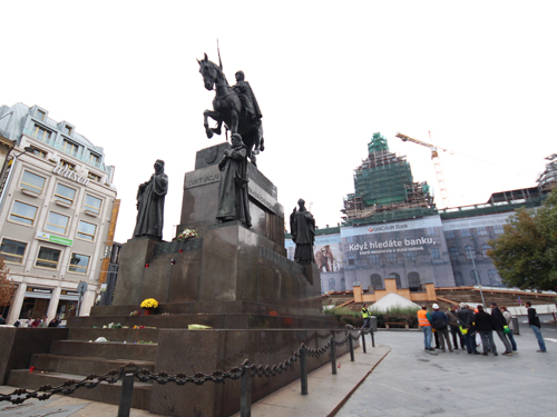 ヴァーツラフ1世は、チェコの守護聖人聖ヴァーツラフとも言われています。民族の危機には、あの世から蘇って外敵を打ち負かしてくれるという伝説があるそうですが、この騎馬像もとても勇ましい姿をしています。この騎馬像と後ろにある国立博物館は格好の記念撮影スポットで、人波が途切れることなく観光客が訪れていました。