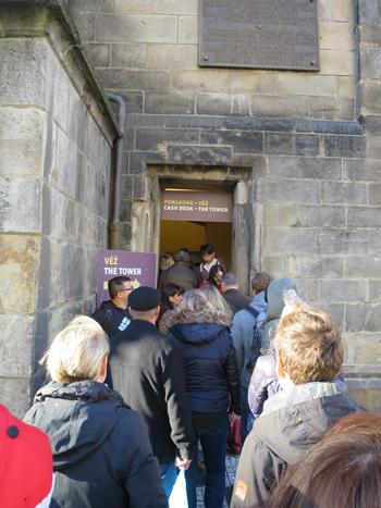午前中、降り続いていた雨が上がり、快晴となった夕方。市庁舎の塔に登ろうとしたら、チケット売り場には長蛇の列ができていました。しかも、やっとチケットが購入できたと思ったら、今度は塔へ登るまでに、50分待ち!! 時間帯によってはすぐ登れることもありますが、天気の良い日の日没前などはすごく混みあうようです。