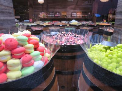 通りを歩いていると、窓ガラス越しに店内の様子が目に入ってきます。樽の中には赤や黄色や緑のフルーツやマカロンが山と盛られていて、ボディーソープの類かと思ったら、なんとキャンディー! どんな味がするのかと恐る恐る選んでしまいましたが、面白いお土産として選んでも楽しいと思います。