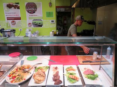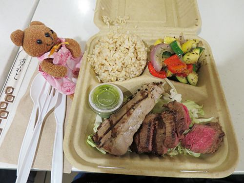 新鮮な食材を使ったヘルシーな無添加プレートランチ店です。店頭に掲げられたメニューには日本語も記載されています。肉や魚は注文すると、その場で調理してくれるので、5分ほど待ちました。一番人気の「サーフ&ターフ(Surf & Turf Platter)」を頼んだら、ステーキの焼き具合はレアで、かなりのボリューム。がっつりいきたい方にぴったりかもしれませんが、私には重過ぎました…。