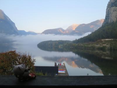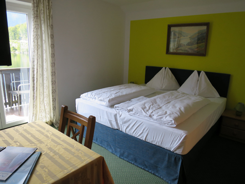 ハルシュタット駅の隣りのオーバートラウン駅から歩いて6分。ホテルの目の前は湖で、対岸にはハルシュタットの町が見えます。本数は少ないですが、ハルシュタットの町へ渡る船も目の前の桟橋から出ています。3階建てなのにエレベーターはないし、部屋もシンプルですが、オーナー夫妻はとても親切で居心地の良いホテルでした。