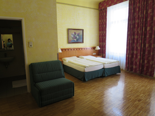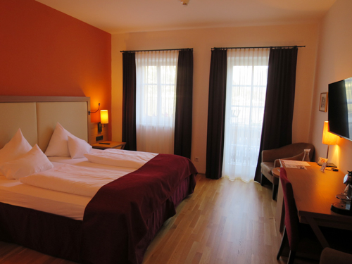 グラーツ駅を出たら数メートル離れたところに地下商店街へ下りるエスカレーターがあります。通りをはさんで、そのむこうにホテルが見えるので、すぐわかると思います。地下商店街に下りたらまっすぐ進むと地上へ上がるエレベーターがあるので、階段を上り下りすることなくホテルへ到着できました。部屋はゆったりしていて、静かで過ごしやすかったです。