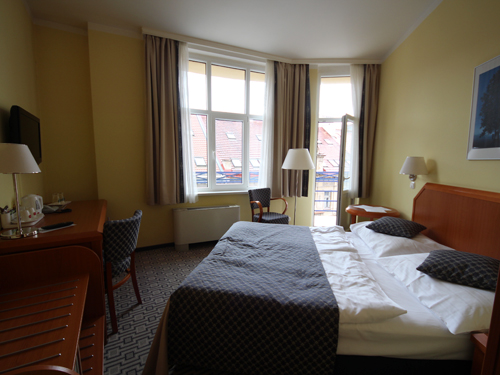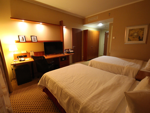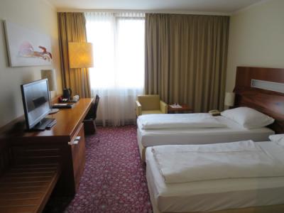 プラハの他のホテルでは幅の狭いベッドばかりだったので、久しぶりにアメリカンサイズのベッドでゆったり眠れました。その他、部屋の設備は問題なし。ただ吹き抜けのロビーを中心に部屋が配置されているため、部屋からは外の景色が見れないのが残念でした。ただ、その分、空港が目の前でも騒音に悩まされることはありません。- 旅行時期