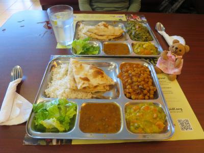 メインのカレーは数種類ある中からひとつ選び、他にバスマティ・ライス(インド米)、レンズ豆(Yellow dal)、日替わりの野菜カレー、ピクルス(Achar)、ナン、サラダがセットになっていて、とてもおいしかったです。- 旅行時期
