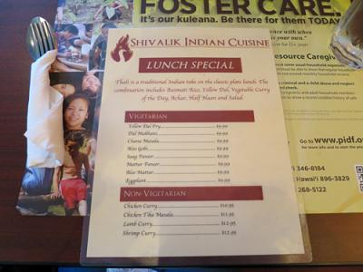 ランチ・タイムには、ひとつのプレートにご飯や数種類のカレーなどが盛られた「ターリー」のスペシャル・コンボが、お値段たったの9.9ドル。