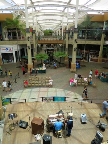 カアナパリから公共の「マウイ・バス」に乗っていきました。このザ ワーフ シネマ センター(The Wharf Cinema Center)の裏側にバス停があります。館内には、その名の通り映画館(3D対応)があり、オープンエアの中庭を囲むように建つ3階建ての建物の中には洋服、雑貨、レストランにカフェなどが軒を連ねていました。