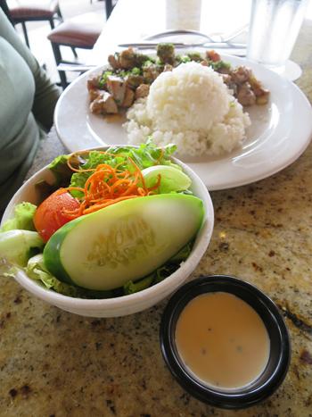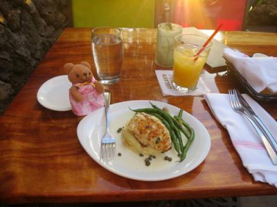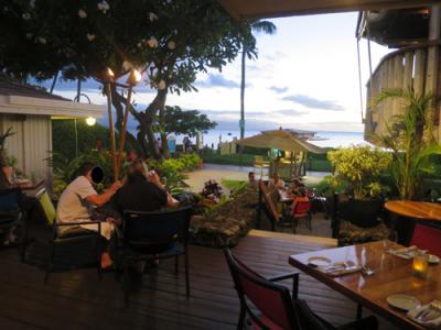 ホエラーズ・ヴィレッジにあるレストランです。すぐ横のフラ・グリルが満席で30分待ちと言われましたが、こちらはすぐにテーブルに案内してもらえました。店内は意外と広く、オープンエアの席からは夕陽が見えて、新鮮な魚料理を堪能しながら贅沢な気分で食事ができました。値段はサラダとシーフードを一品づつ頼んでふたりでシェアして、ひとり30ドルちょっとでした。