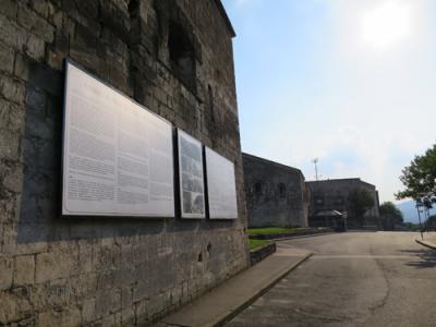 ツィタデッラがあるゲッレールトの丘には、ゲッレールト温泉側から登ってくるルートとエルジェーベト橋方面から登ってくるルートがあります。私はゲッレールト温泉側から登り景色に気をとられていましたが、団体ツアーはエルジェーベト橋側から登ってきてツィタデッラ前で足を止め説明を聞かされるようです。そうでなければ、そのまま通り過ぎてしまうような場所ですが、外壁に説明と写真が載っているので、ありし日の姿と今を見比べてみるとよいかと思います。