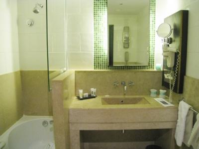 バスタブはゆったり足を伸ばしてつかれる大きさで、湯船につかるのが苦手な私が、いつまでもつかっていたいと思う心地よかったです。アメニティはブルガリのシャンプー、コンディショナー、ボディーローションに石鹸など。ヘアブラシは安っぽい折り畳み式ではなく、しっかりしたタイプで、ブラッシングすると頭皮までマッサージしてくれるような使い心地でした。