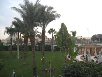ピラミッドビューの部屋を予約して行きましたが、敷地内の木が邪魔でピラミッドはよく見えませんでした。こんなことならピラミッドビューではない安い部屋にすればよかったと思います。でもサービスはすごく良かったです。午前中にアーリーチェックインさせてくれて、その後すぐに慌てた様子でウエルカムサービスのフルーツの盛り合わせを持ってきてくれました。朝食のビュッフェもおいしくて、朝から食べ過ぎるくらい欲張っちゃいました。
