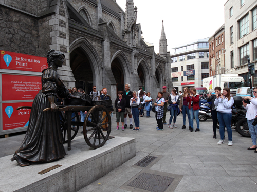 日本ではほとんど知られていないと思いますが、モリーマローンは19世紀後半、ダブリンで魚売りをしていた女性が熱病のため若くして亡くなったという歌です。私がこの像の前を訪れた時、たまたまその場に来ていたツアーの人たちがガイドさんとともにこの歌を歌っていました。ダブリンでは知らない人がいないという歌だそうですが、機会があれば、この歌を聞いてこの場所を訪れると、いっそう胸に感じるものがあるかもしれません。