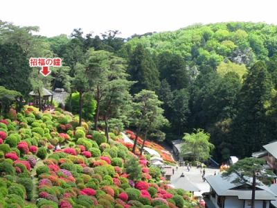 災厄や病気等をはらい、幸せをもたらすと言われている鐘です。ちょうど、つつじ祭りの期間中でたくさんの人が訪れていたため行列ができていました。