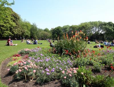 トリニティカレッジ方面からグラフトン通りをまっすぐ歩いていくと、つきあたりに入り口があります。とても広い公園で、お昼時はこの周辺で働く人たちがランチタイムを過ごす場所となっていて、ベンチも芝生も混んでいました。園内にはアイルランドゆかりの人々のモニュメントが数多くあり、それらの一覧を示した看板も出ているので、巡ってみるのもおもしろいかと思います。