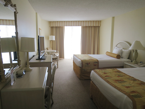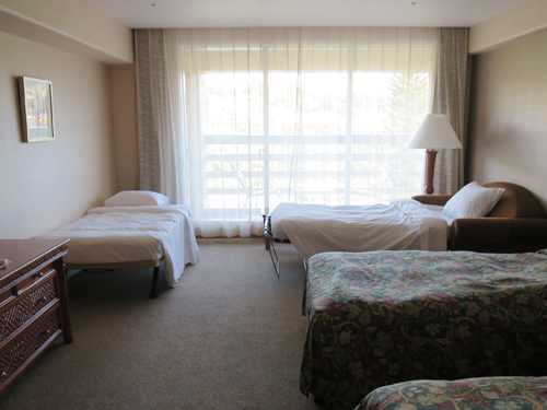 ツインベッド2台とエクストラベッド2台の洋室でしたが、エクストラベッドのうちひとつはソファーをベッドにしていたので、部屋の中でテーブルにお茶を置いてソファーにゆっくり座って休むことができず、少々、落ち着かない感じでした。やはり、このホテルでは海側の部屋がおすすめだと思います。- 旅行時期
