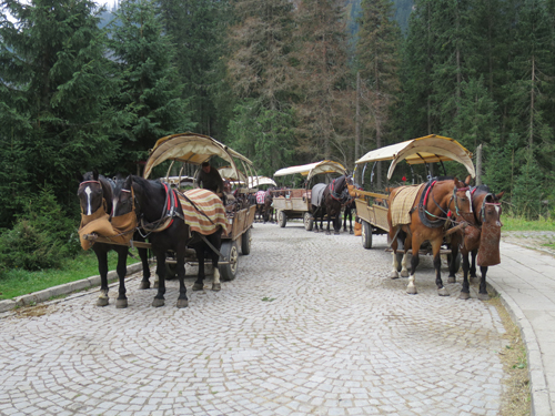 ザコパネからは所要約50分、「Polana Palenica」と言うバス停で下車したら、入場料5ズウォティ(約190円)を払って、あとは湖までほとんどアップダウンのない舗装道路を歩くだけ。小さな子供をつれた家族連れの姿も多くみかけましたが、湖までは2-3時間歩くので、しんどい場合は馬車に乗って行くこともできます。- 旅行時期
