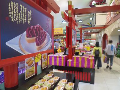 紅いもタルトで有名なお店ですが、10時過ぎに行ったらガラス越しに作っているところを見ることができました。また、食品から雑貨までさまざまなお土産が取り揃えられていますが、特にお菓子は個包装を一個から購入できるのが便利でした。それから、店内からはとてもきれいな海を眺めたり、ビーチに下りることもできました。