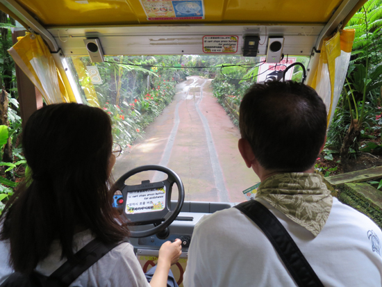園内を見学には自動運転のパイナップル号に乗って見るルート(入場料とは別料金)と、徒歩で見て回るルートなどがあります。普段、スーパーや八百屋の店頭に並んでいるパイナップルはこんなふうに実がなっているのかと見られて、思っていたよりおもしろかったのですが、パイナップル号に乗るところを写真に撮ろうとしたら、園内の人に止められたのがちょっとがっかりでした。
