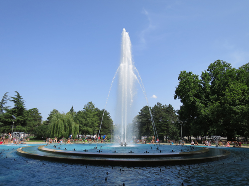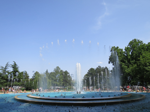 マルギット橋から島へとまっすぐ歩いて行くと、噴水があります。そこで夏季限定、朝11時から夜9時位まで噴水ショーが行われていました。見学は無料で、噴水はけっこうな高さまで上がります。私が訪れたのは14時半頃でしたが、一度、終わったかと思うと、また次が始まるという具合で、けっこう長い時間、見惚れてしまいました。噴水のまわりには腰を下ろした人々がおしゃべりに興じたり、噴水ショーを見たりしながらのんびりくつろいでいました。