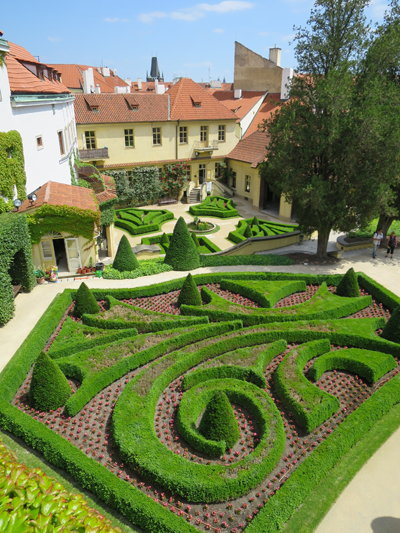 非常に美しいフランス式庭園です。聖ミクラーシュ教会から南へ伸びるカルメリツカー通り(Karmelitska)に入口があります。わかりづらいですが、すぐ近くのカルメリツカー通りに面したカフェのお兄さんに聞いたら、すぐそこだと教えてくれました。