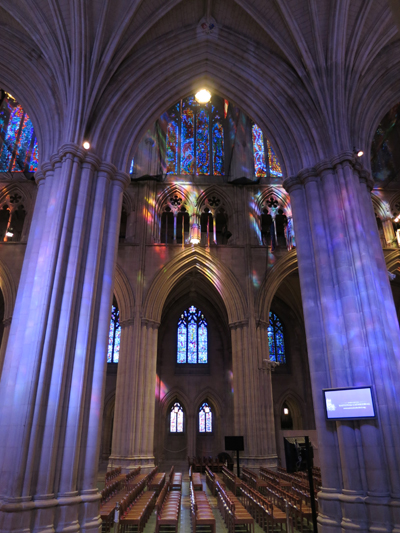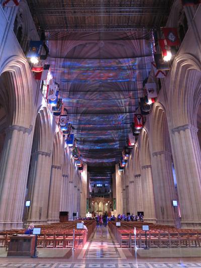 フォギーボトム駅から歩いてVirginia st & 23th stのバス停へ行き、32番バスに乗って約20分、NW Massachusettu Ave & NW Wisconsin Aveで下車すると、右手に大聖堂の建物が見えてきました。大聖堂はその巨大さにも驚かされますが、内陣の美しさには目を見張ります。天井に張られた布にステンドグラスの光が映りこみ、幻想的な空間を作り出していました。またエレベーターで7階に上がると、周囲の景色を一望できるので、ぜひ天気のいい日にここを訪れてみることをオススメします。