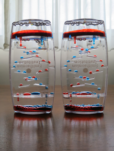 それから、お土産コーナーも見逃せません。「ウォータータイマー(別名オイルタイマー。1個10ドル。中国製)」と呼ばれる水と油を利用した砂時計みたいなものを売っています。これは温度によって速度が変わるのでタイマーとしては使えませんが、ぽったりぽったりと規則的に落ちる油の粒を見ていると気持ちが和んで癒されます。- 旅行時期