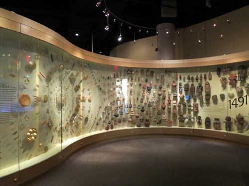 展示室のガラスケースがカーブしているので光が反射して、多少、見づらいと感じました。けれど、古代インカの黄金マスクや古代マヤのカレンダーなど非常に興味深い展示がたくさんありました。また、アニメーションを使って神話を紹介しているコーナーもあり、休憩がてら座って見ることができました。
