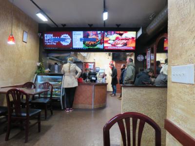 ビーフやチキン ケバブのプレートセット(ライスやサラダ付)や、ピタパン(中東やアフリカで食べられている平べったいパン)のラップサンドなどが食べられるファーストフードのお店です。サイドメニューにはフレンチフライやサモサ、ホンモス、サラダ、スープ、デザートなどもありました。