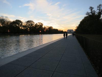 ワシントンD.Cで一番のお気に入りの場所です。リンカーン記念館はギリシャの神殿のようだとガイドブックに書いてありましたが、入口に立ってワシントン記念塔へと伸びるリフレクティングプールを見下ろしていると、まさに神殿に立っているような清らかな空気に包まれました。フォギーボトム駅近くのホテルからスミソニアンの博物館地区まで、毎日、ここを歩きましたが、朝のさわやかな空気も、夕方の燃えるような空もとても美しかったです。ぜひここを訪れたら、プール沿いに歩いてみることをおすすめします。