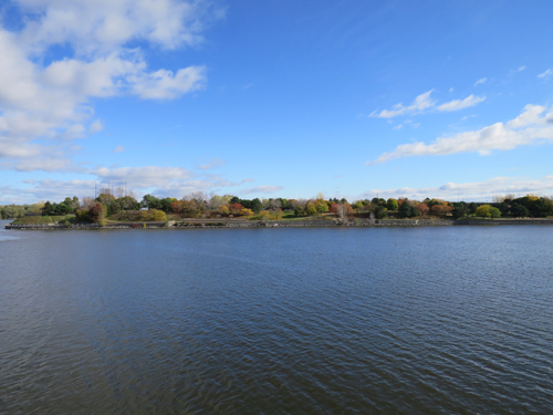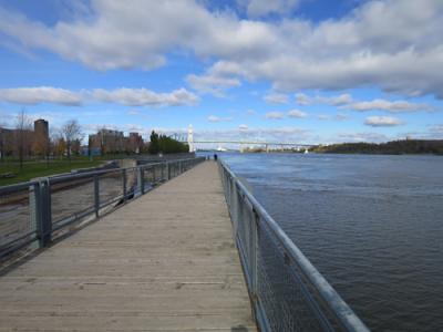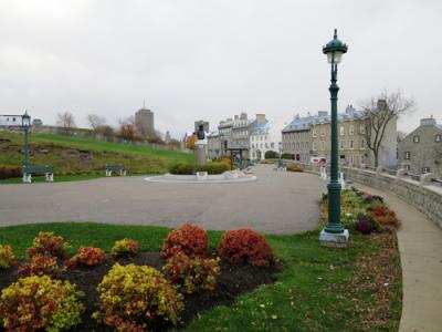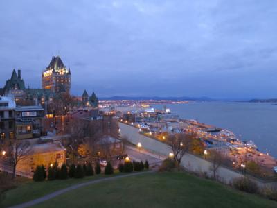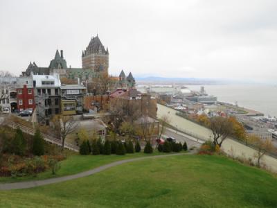 私が行った時はあいにく曇り空で、おまけに風も強くて飛ばされそうになりましたが、はるか彼方に向かってゆったりと流れるセント・ローレンス川とお城のようなシャトー フロントナックは一枚の絵画のようでした。