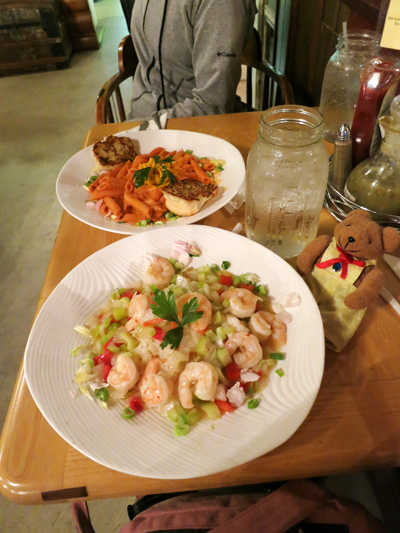 メニューはシーフード、ステーキ、パスタ、バーガー、サンドイッチにタイ料理などがあり、私は「The wok(13ドル)」を注文しました。wokは「中華なべ」という意味ですが、出てきたのは「エビ入りの甘辛あんかけ炒飯」。ピリ辛ですが、エビ、セロリ、にんじん、ネギなどがたっぷり入っていて、おいしかったです。