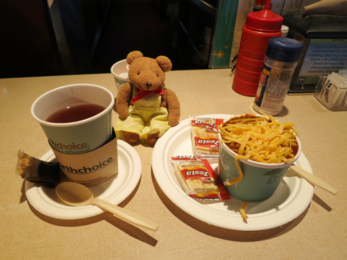 「黒豆バーガー」はベジタリアン向けメニューで、豆をすり潰したパテが挟まっているのかと思ったら、パテの中に黒豆が粒のまま入っていて、食感がおもしろかったです。また、「ワイルドネス チリ」はチリビーンズのことで、金時豆みたいな大きな豆がごろごろ入っていました。味はピリ辛で、冷えた体が温まりました。- 旅行時期