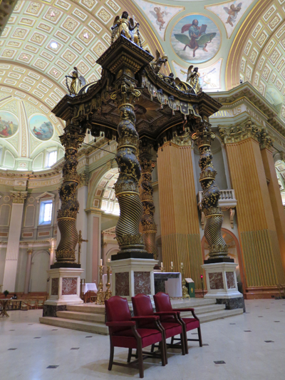プラス・ボナバンチュール(Bonaventure)駅から歩いてすぐの所にあります。バチカンのサン・ピエトロ大聖堂を模して作られたそうですが、内陣の天蓋が彫刻家であり建築家でもあるジャン・ロレンツォ・ベルニーニ作のものにそっくりで、ベルニーニ ファンとしてはじっくり見入ってしまいました。