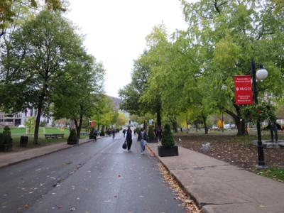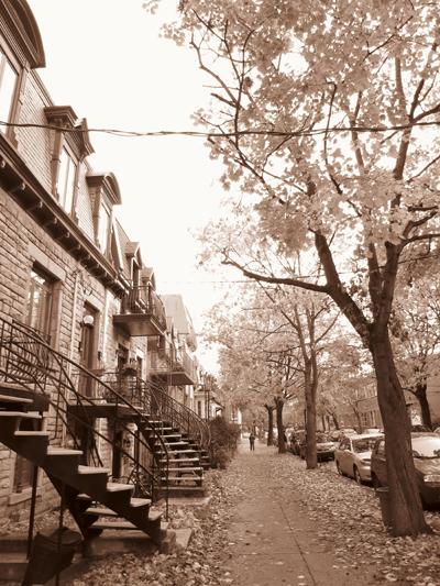 地下鉄ベリー・ユーカム駅(Berri-UQAM)の北、サン・ドニ通り(Rue St-Denis)沿いに広がる地区で、モントリオールのダウンタウン北東部にあります。ケベック大学モントリオール校の学生達が集まることから、この名がついたそうですが、洒落たカフェやパブ、レストランやギャラリーが軒を連ねていました。また、この辺りには19世紀後半に建てられたビクトリア調の建物が今も住宅として使われていて、街並を見て歩くだけでも楽しかったです。