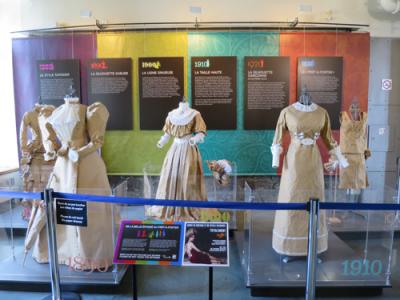 一階には工芸品や服飾品などを売るお店、二階はアートギャラリーなどが入っています。私が行った時には一階のミュージアム(Musee du costume et du textile du Quebec)で行われている紙のドレス展の紹介が入口近くに置いてありました。非常に精巧に作られていて、紙でできているとは思えないほどの完成度です。こうした展示は定期的に変わるらしいので、ちょっと覗いてみてもおもしろいかなと思いました。また、マーケット前の石畳の通りは、なかなか雰囲気があって良かったです。