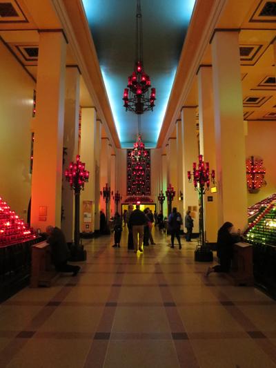 入場料5ドル払っても見て良かったと思える大聖堂です。ネオ・ゴシック様式の重厚な入口を入ると、美しいコバルトブルーの床と祭壇に目を奪われますが、柱の一本、一本に施された精緻な飾りや文様。また、ステンドグラスから差し込む光が椅子に映し出す模様など見所満載です。私はじっくり見ていたら、あっという間に1時間半が経っていました。