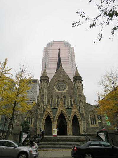 周囲には高層ビルが建ちならび、ともするとそのまま通り過ぎてしまいそうな教会です。が、一歩中に入ると、周囲の喧騒を忘れさせてくれる厳かな静寂さに包まれていました。また、ここはかつて地盤沈下のために傾いたことがあったそうですが、地盤を安定させるため地下にショッピングモールを建設したと言います。歴史ある教会と現代建築の融合などと考えながら歩くと、みょうに足もとが気になりました。