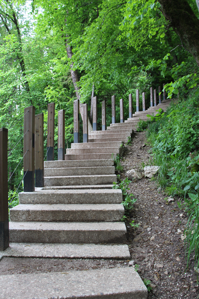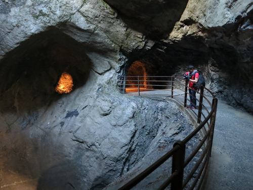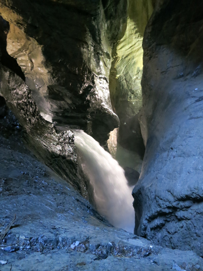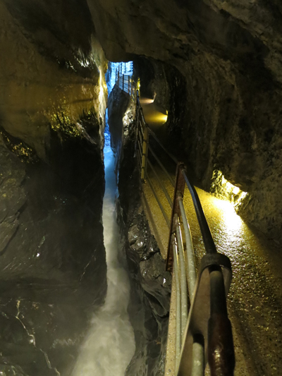 外からはまったく見えませんが、中に入ると毎秒2万リットルもの雪解け水が大瀑布となって流れ落ちています。エレベーターで上へ上がると、階段や緩い坂を登りながら滝を見ていきます。まるで古代の地下墳墓の中にいるようで、遺跡好きな私と友人は大興奮。入場したのがクローズされる30分前だったので駆け足での見学となりましたが、すごく楽しかったです。7月は遅くまで明るいので時間を忘れがちですが、クローズの時間は要チェックです。私たちが行った時は18時で閉まってしまいました。それから、入場料は11CHFでしたが、インターラーケンのホテル宿泊者はホテルで無料でもらえる「インターラーケンカード」を提示すると割引になり10CHFで入れました。