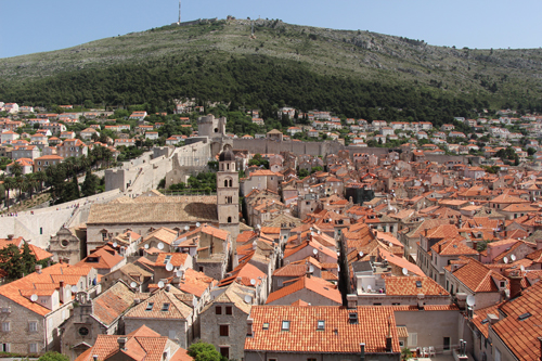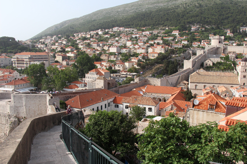 ドブロブニク観光では必ず訪れると言ってもいい場所なので、すごく混雑しています。特に、午前中は団体ツアー客で大行列になっていました。でも、私は夕方4時頃に行きましたが、ツアー客は帰ってしまう時間なのか、人も少なく景色をゆっくり楽しむことができました(城壁は夜7時まで開いています)。また日暮れ近くのほうが夕日に照らされて、旧市街のオレンジの屋根がいっそう色鮮かで美しく、何度も立ち止まって見惚れていたら、一周するのに2時間以上かかってしまいました。