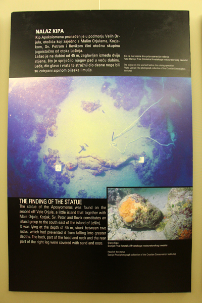 私が行った時はすごく空いていて、観光客は3人くらいしかいませんでした。ルノワールやターナーなどの絵画や、日本や中国の美しい陶磁器、中世の彫刻など、とても素晴らしい展示がいくつもありましたが、その中でも特に目をひかれたのは、海底から引き上げられギリシャ時代のアスリート像です。海底ですっかり浸食されてしまった像が、引き上げられてから修復されるまでの様子もビデオで紹介されています。その技術と根気のいる作業に頭が下がる思いで見入ってしまいました。この美術館の入場料は40クーナ。クレジッドカードは使えませんでした。